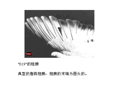 1、要回答你的问题,首先什么是鸽子的腰和尾羽。鸽子的腰:躯干的组成部分。位于背于尾筒之间。是骨头与肌肉的接合处,于飞行时起推动作用,乃鉴别赛鸽的重要部分。因无肋骨支持,腰部要求发达、结实,才有力量持续飞行。目测时较为宽阔,手摸时略感粗壮,富有伸展力。 鸽子的尾羽:鸽子正羽的一种。尾羽有12根,组成鸽子的尾部。其功能为在飞翔时转换方向,在升降时平衡鸽体。尾羽要长的丰满,否则会使鸽子在飞行中失去重心,而不能保持平衡。但过长、过短或过宽,都会在飞行中增加阻力,以及在起飞和降落时容易发生意外。理想的尾羽应长于大羽轴2—2.5厘米。尾羽的羽茎必须是强壮的,以利突然起飞。优良赛鸽的12根尾羽就像一把折扇,散开时形如半月,合起来要成一扇柄,俗称:“一字尾”。 2、鸽子紫肉表示竞技状态没有达到最佳状态。 3、图片是典型的快速鸽的翅膀。 2009-2-12 16:29:53