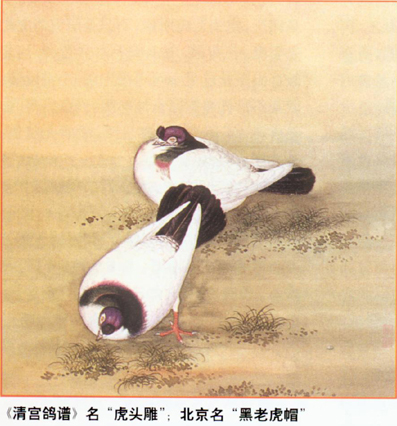 明王世贞《驯鸽赋》有“雪毛而黔其首尾”句,我认为指的就是黑乌。黑乌或称“两头乌”,岂不与赋句相符。当然“点子”也是“黔其首尾”,但头顶黑点太小,不如黑乌更加吻合。