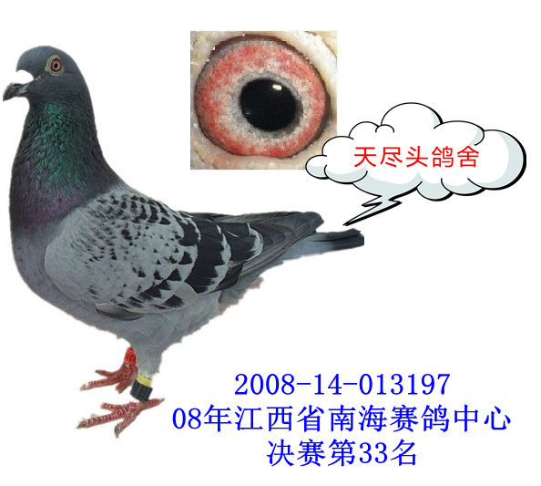 这个全圈型黄眼志做种很好,选择种鸽一定要多关注血统与赛绩,眼砂只是表面的东西,只能作为参考。