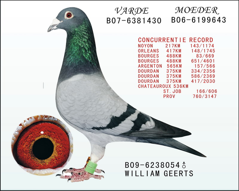 朋友送的一窝鸽蛋出的,父是黄眼威廉(据说为引进的原棚鸽所生),母黄眼血统不详,品系属于杂交了。小鸽中,雌鸽像其母鸽就不说了。雄鸽同父鸽较为相像,体型属于中大型,但为砂眼,蓝色眼底,前档角伴有部分牛眼,同辈分多为这类眼睛,同父异母的平辈也多为砂眼蓝底。浅灰色,两条黑线靠近下部的位置渐显模糊,前胸比较宽,肌肉较发达,总体手感不错的,翅膀主羽大条比较宽,有一定弧度,且端部呈圆形,此雄鸽配胡本雨点母鸽,子代中除羽色和眼睛不同外,从外观看,出的雌鸽都和胡本雌鸽较为相像,但小雄鸽和该雄鸽都十分相像,且多为砂眼,但眼底为白色,没出现过蓝色眼底,。了解威廉吉尔特的朋友介绍一下蓝色眼底是否为正常?