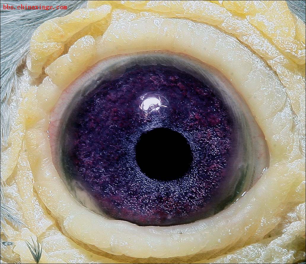 请欣赏紫罗兰鸽眼!     单就紫罗兰眼志来说,紫罗兰眼志是世界公认的也是珍贵的鸽眼,它的眼志于一般鸽眼不同,是鸽眼中的国宝级,其特色为,在虹彩周围可以发现很多秘密。     关于作育紫罗兰眼志,这个问题涉及到生物遗传学和自然科学。有养鸽高手观察得出:两只紫罗兰眼志交配,可以作育出绿眼志的后代,和两只砂眼作育出黄眼比较特殊一样;两只绿眼志交配能作育出紫罗兰的后代。     另外,好鸽子一定有一双好眼睛,好眼睛不一定都是好鸽子。     想提醒的是:一百只冠军,就有一百双好眼睛。从鸽子的眼睛可以看出鸽子的健康,鸽子的情绪和鸽子是否聪明。至于能否作种、能否飞出好成绩,只有天知道。     种鸽要全面考虑,诸如血统、家族比赛成绩、本身条件等多方面因素,最后要经过实践检验才能确认这种鸽子是否有育种价值。     以上仅供参考。
