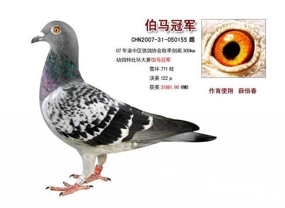 “伯马”就是伯乐相中的马,来自“伯乐能识千里马”的典故。鸽界用“伯马”一词,应该归于中国台湾的鸽友在八十年代赛鸽运动竞争非常激烈的过程中,称那些在有效期内唯一归返并获得全部奖金的选手鸽。在国内,就是“广东”首先使用“伯马”于赛鸽运动中,意思比台湾朋友更广泛、更明确,就是在比赛开始前,专门设一个项目,就叫“伯马”,投注一般在100元/羽以上,多则有500元以及上千元,谁获冠军谁就独吞全部奖金,这样运用“伯马”一词,更加符合“伯马相中的马”的一词的本来含义的。也就是在组织比赛单位规定的归巢期限内,如果仅仅归巢一羽鸽子,这羽鸽子就是伯马鸽,所有奖金归全部归属这羽鸽子参赛主人所有,这就是“伯马制”比赛。 2008-6-18 19:42:18
