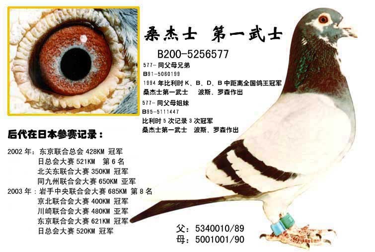 鸽坛有名谚语“詹森快,桑杰士”更快。此图是桑杰士的代表鸽:汤姆和晚生汤姆。桑杰士先生的鸽子近年来在中国鸽友眼中已不陌生,但既听其名我就想见其人。2001年9月11日,本人与桑杰士鸽系第一继承人波斯.罗森先生一起拜访了这个在中国享有名气的比利时短程快速赛鸽家乔司.桑杰士先生。 桑杰士先生现年六十多岁,原来在一家牛奶制品厂工作,现退休在家。由于当时的工作时间是两班制,一班是上午6点到下午2点,另一班是下午2点到晚上10点这样倒班工作,很多时间是他夫人帮他放飞鸽子。 桑杰士先生1972年开始养鸽子,75年他作出的一羽雄鸽汤姆号(TOM)获13次冠军,546号12次1名,533号3次1名。自此,他的赛鸽开始取得很多好成绩。76年获12次冠军,另一羽名鸽德501号(DE501)连续5星期参赛5次获冠军,共获8次冠军。桑杰士鸽舍从1975年至1991年一直都是中短距离快速强手,一羽拉特.汤姆号(LATETOM)获3次第一名,还有另一羽汤姆号直子杨(JAN)获16次第一名,B78-881号获22次第一名,B86-946号杨直子获10次第一名,所有这些赛鸽主力阵容为桑杰士奠定了强豪地位。 桑杰士鸽系有二个特点:一是羽色以灰白头为主,灰白条为次,也有灰白条白头和雨点;二是短程快速适宜于200至500公里赛距。在他的赛鸽历史中(1972-1991年)曾获得过300多次的冠军。 1991年桑杰士先生结束了他的赛鸽生涯。这是由于沃门根地区政府开发建立工业区,桑杰士鸽舍地址处在拆迁行例,他的儿子在上学没有继承父亲的信鸽爱好,于是桑杰士把他所有的鸽子清棚。当时最大的买主,也就是现在他的第一继承人波斯.罗森(PROSROOSEN)先生买走了他大部分鸽子,另一小部分传给了亨利.库斯托斯先生、凡瑞特先生等其他桑杰士爱好者。现在桑杰士先生仍居住在沃门根同一城市的新住所。 虽然桑杰士先生现在不养鸽子,但他的优良种鸽及他的育种和养鸽经验给我们留下了学习的榜样。他的第一继承人波斯.罗森先生更是把桑杰士鸽系发扬光大成为比利时短距离快速的一系名血。 拜访将要结束时,我问桑杰士先生:“现在比利时赛鸽这样热烈,在全世界这么引人瞩目,你虽然停止养鸽有10多年了,你现在还想继续养鸽子吗?”他说:“我年纪大了,同时我的鸽系也有了继承人,我就不想继续赛鸽了,凯特琳女士今天你来了,请你给中国鸽友带去我的问侯。我希望中国鸽友用我鸽系的鸽子飞出更多好成绩。” 桑杰士先生停止养鸽为1991年,原棚鸽最年轻的也应该10多岁了,当时就是波斯罗森有桑杰士的鸽子200多羽,现在留下的仅是一本桑杰士当时记载幼鸽环号的册子和一大叠原棚血统书而已。 波斯.罗森先生让我参观了他的办公室及鸽舍。我看到了办公室的墙上挂满了全国赛入赏前几名的奖状、奖牌。他拿来一大串省赛全国赛冠、亚、季军奖牌说:“你看,这么多的大奖赛奖牌,皇家鸽协发的,你带去中国给中国鸽友看,让中国鸽友更多地了解我的鸽子。”办公室还有满桌子的大奖杯,充分证明了波斯.罗森鸽舍的成绩辉煌。接着我在波斯.罗森先生的大花园的后面看到了他的鸽舍和可爱的鸽子,他一一介绍他的爱鸽:这是电脑2号、这是电脑2号直子、那是直孙...每一羽都是精品,真让人爱不释手。我说:“罗森先生你的桑杰士鸽这么好,我想引进几羽去中国育出子代在中国放飞,让桑杰士鸽系在中国也成绩辉煌可好”。他说:“好!你自已挑吧”。他抓了一些鸽子给我上手欣赏。我看了不少好种鸽,我说:“我不太懂鸽子,还是您帮我挑吧,你的鸽子你最清楚,请你一对一对配好给我,我想信你”。就这样我得到了几对桑杰士血统的波斯.罗森鸽舍的种鸽。 另一名桑杰士鸽系的传人比利时著名赛鸽家斯达夫.凡瑞特先生引进了多羽桑杰士鸽,加上他原棚的名种鸽,经过不断杂交、训练、培育出凡瑞特短程快速的桑杰士鸽系。现在凡瑞特父子鸽舍部分鸽子含50%桑杰士血统。近几年他们选用桑杰士鸽系加入戈马力鸽系,成绩更加辉煌。例如他的一羽一岁赛鸽B2000-6340667获7次第一名,将成为2001年比利时全国速度赛鸽王。父亲是桑杰士,母亲是戈马力。凡瑞特的另一羽名鸽法沃瑞号(FAVORIE,92-6594826灰 雄)获8次第一名,37次前16名。B2000-6340667获7次一名。史蒂夫.凡瑞特先生听说我很想引进几羽他的优秀种鸽,他精心给我挑选了两对名种,他说:“这是我亲自挑选配对准备留给儿子罗尼的种鸽先给你,希望你用他的子代在中国飞出好成绩。”我一看鸽子血统,其中一羽雄鸽还是大铭鸽法沃瑞号的兄弟呢,父亲是超级种鸽大汤姆号。另几羽也是凡瑞特鸽舍最有名的种鸽031血统。 另一位桑杰士鸽系的继承者亨利.库斯托斯先生,他是比利时林伯赫省著名的全距离赛鸽家,他的一羽B98-516633超级36号,获6次第一名。另一羽超级42号(B91-5304542)获4次第一名。他是波斯.罗森先生的好朋友,他也是亲自来挑选名鸽配好几对种鸽给我,并说:“它们会为你争荣誉的”。真诚的友谊和美好的愿望是令人非常感动的。 近期我们将在《凯特琳赛鸽》杂志上陆续刊登桑杰士名鸽介绍,使鸽友们更多的了解桑杰士鸽系,带领你进入桑杰士鸽系王国。 2011-11-21 16:29:59