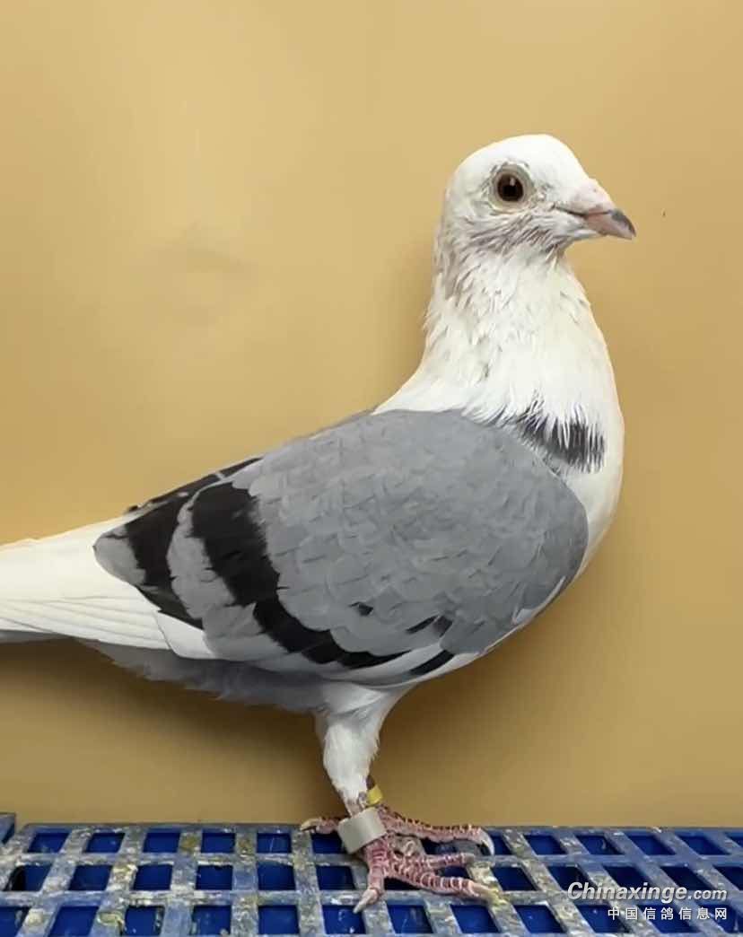 这鸽子是信鸽,属于蝴蝶花羽色。